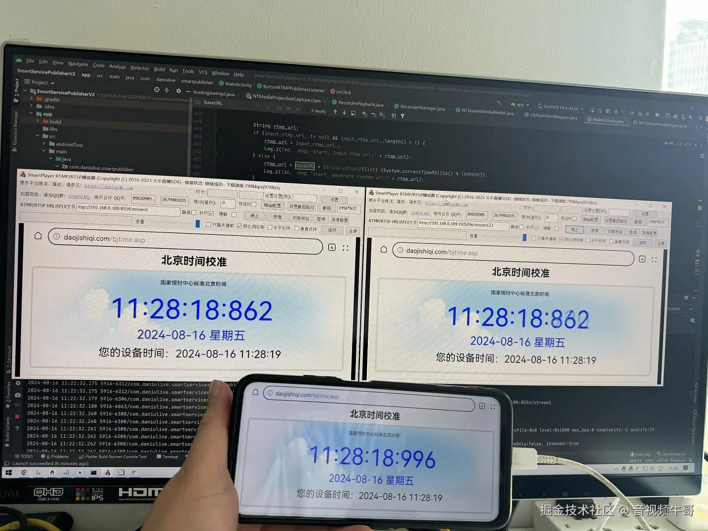 播放效果如下(Android采集屏幕和麦克风|扬声器audio,然后推送到RTMP服务和轻量级RTSP服务),扬声器audio采集,特别是视频播放模式下,比如无纸化同屏过程中,需要放个宣传片,或者一些视频材料,非常方便: