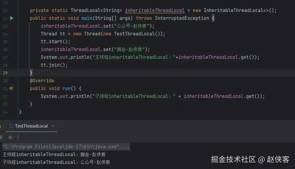 inheritableThreadLocal.set("掘金-赵侠客");