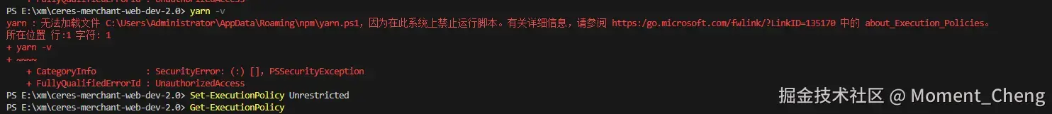 PowerShell 的执行策略用于确定脚本的执行权限。默认情况下,某些策略可能会限制脚本的运行,这可能导致你在运行 yarn 或 pnpm 时遇到错误。