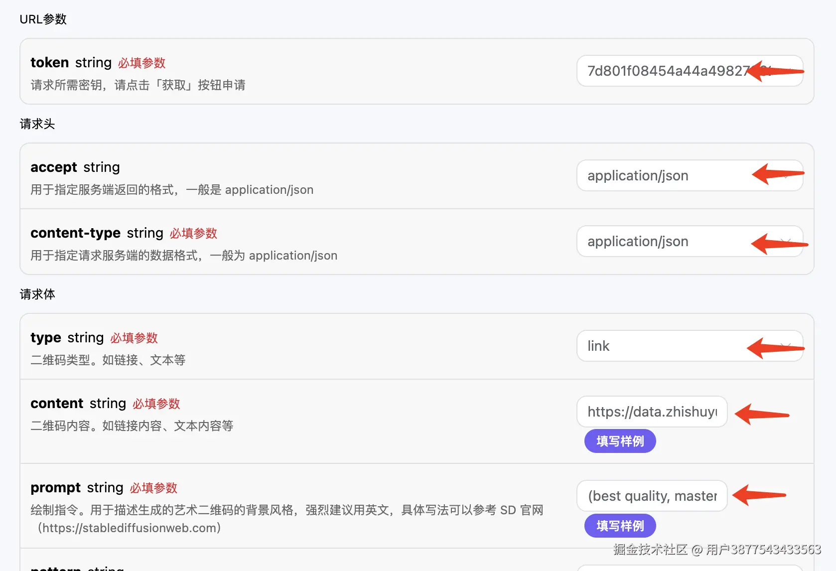 要使用艺术二维码的最基本的功能,需要填入如下几个必须参数: