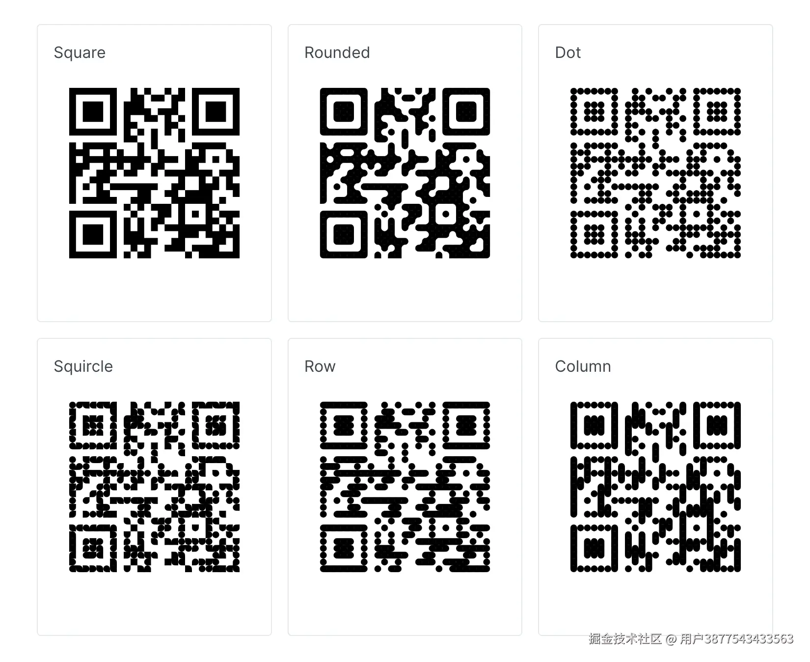 - squircle(圆角方形):类似于圆角矩形,但更加接近圆形的形状,为生成的二维码赋予一种独特的风格。