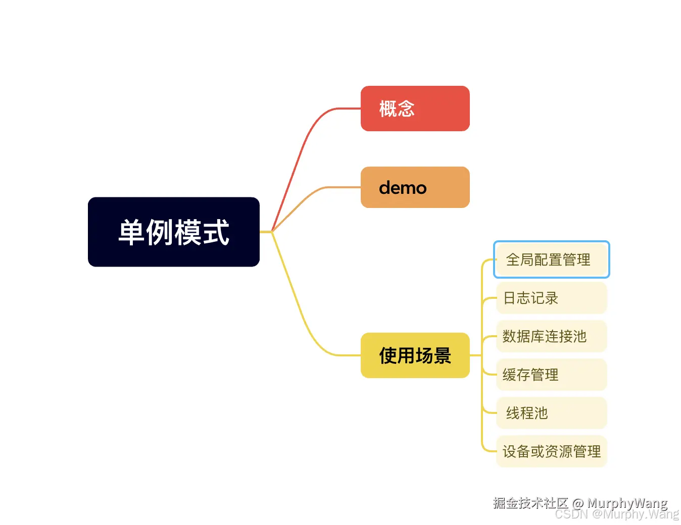 • 在一些应用中,缓存管理通常需要一个全局的管理对象来管理缓存数据。单例模式可以用于确保缓存管理对象在应用中只有一个实例,从而避免多次实例化带来的资源浪费。