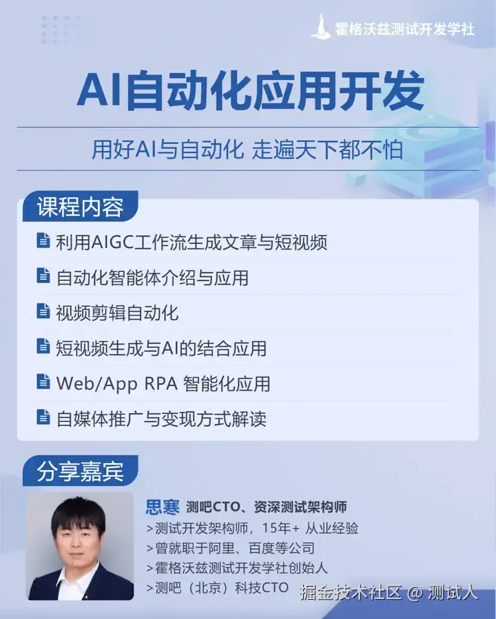 无论您是希望提升个人技能的技术爱好者,还是想通过AI实现副业自由的学生和职场人士,这场公开课都将为您带来前所未有的启发与收获。立即报名,让我们携手并进,在AI与自动化的浪潮中乘风破浪,共创辉煌未来!