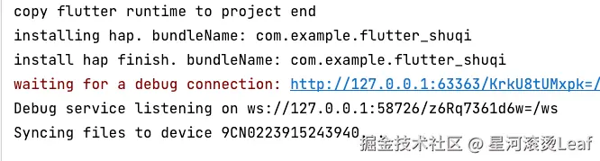 签名成功之后在回到Android Stuido,再链接鸿蒙系统真机flutter run。这就说明已经成功跑起来了。