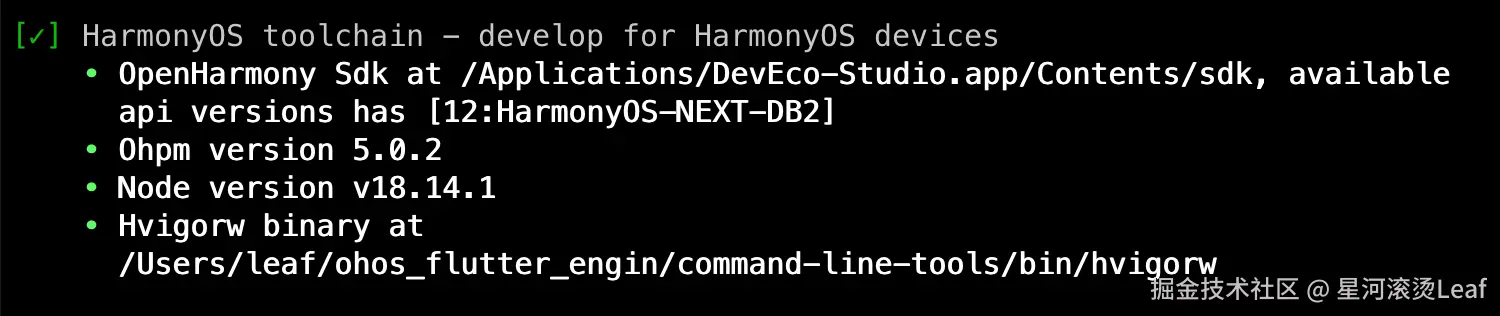 在终端输入命令行 flutter doctor -v, 如果检查成功则代表针对鸿蒙系统的Flutter环境配置没问题。