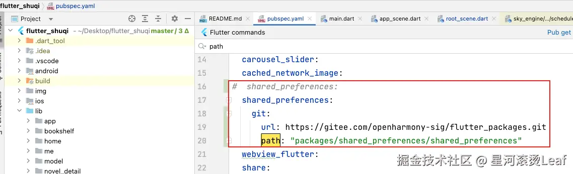 然后如下方式进行修改就行。修改完了之后执行 flutter pub get 更新本地代码。