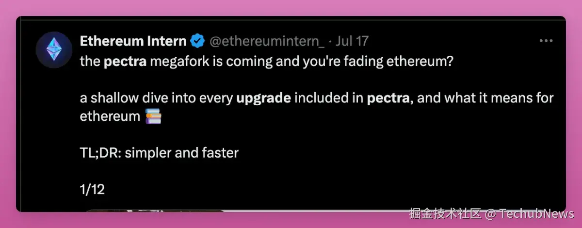 Ethereum Intern 的这条推特简单解释了技术升级的影响。