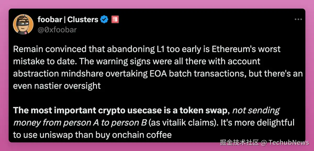- 以太坊的模块化与 L2 割裂了资金流动性, 并使用户体验复杂化。