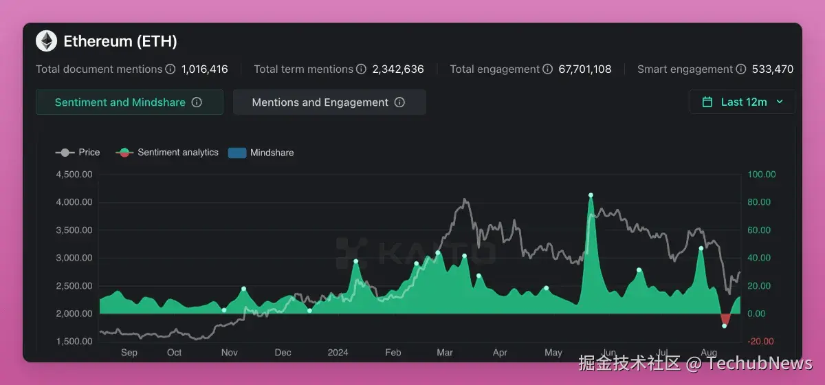 目前推特上很少有「ultrasound money」的 Memecoin。看空言论充斥推特, 但以太坊的看涨情绪仍然存在, 尽管不如比特币强烈。