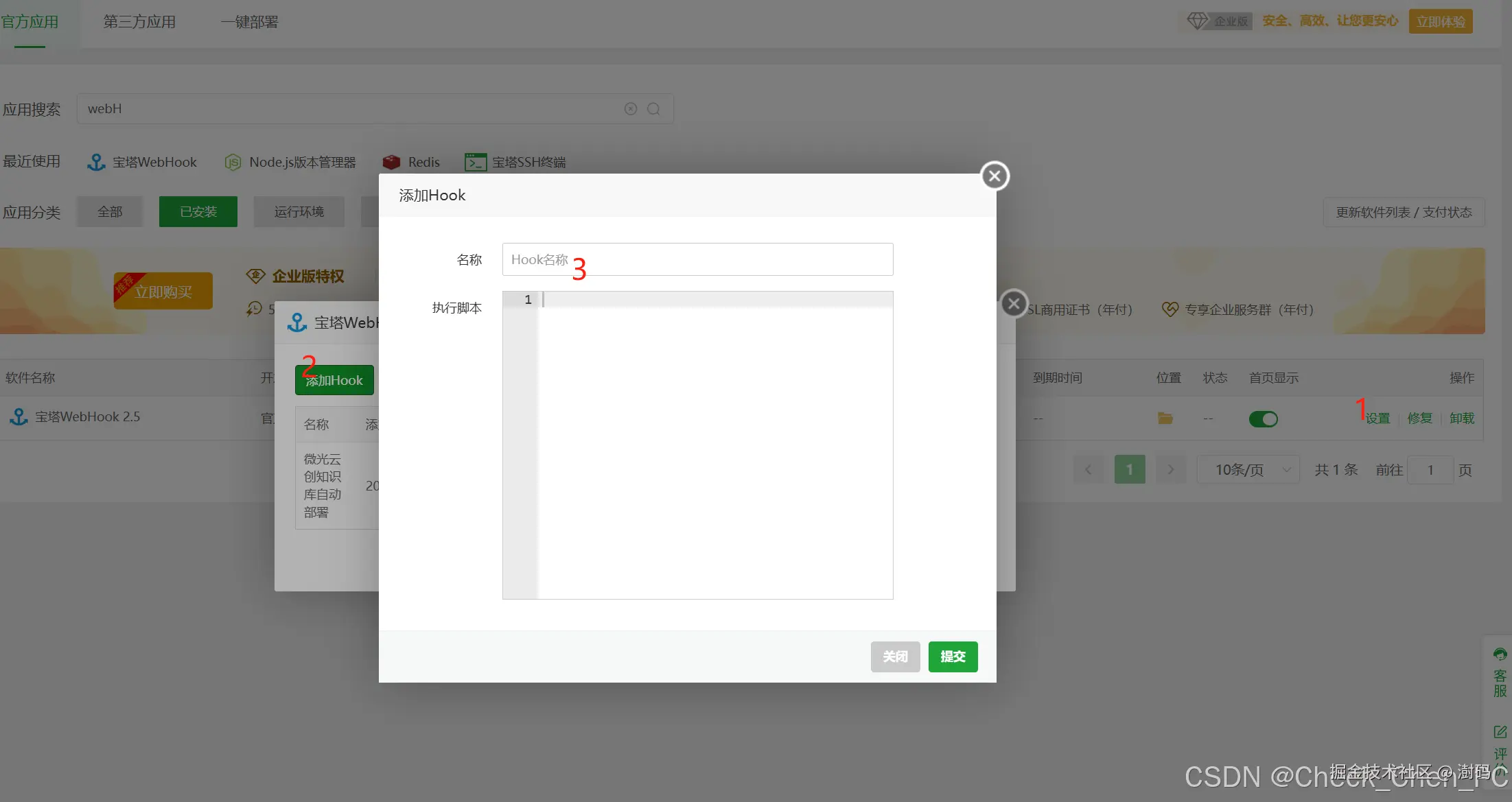 - WebHook是一种强大的自动化工具,它能够在代码仓库(如Gitee)发生变动时自动触发特定的操作,如部署更新。在宝塔面板中配置WebHook时,需要按照以下步骤操作: