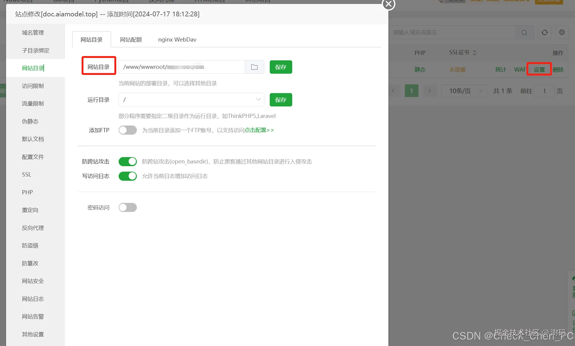 三、使用宝塔建立网站及运行目录