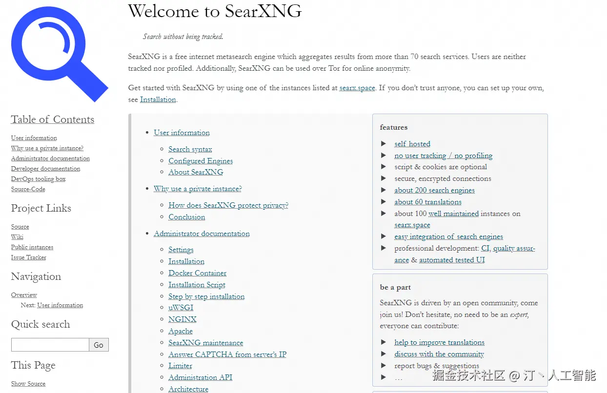 项目地址:docs.searxng.org/