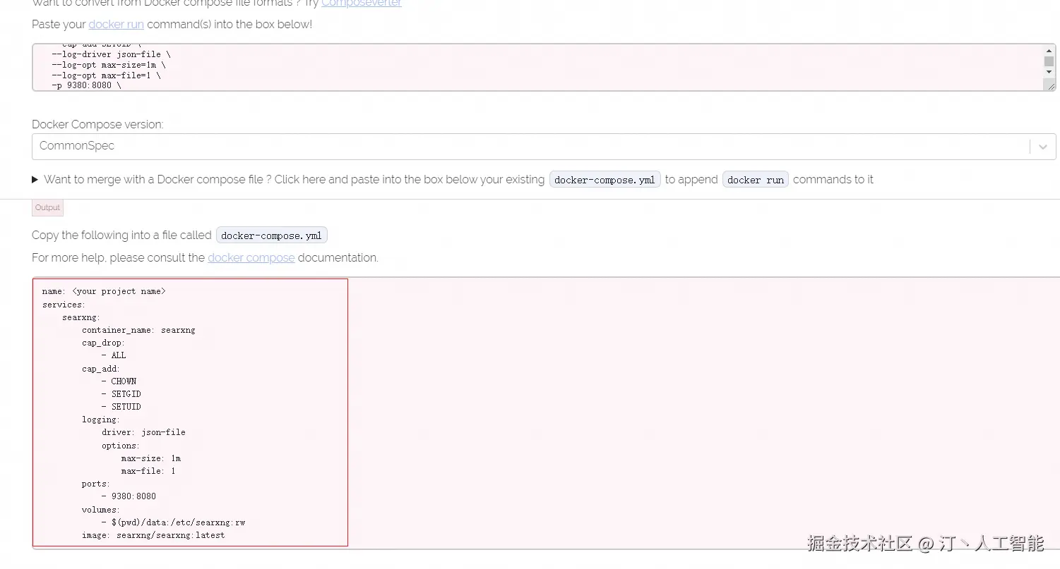 - 修改 settings.yml 当安装 SearXNG 时,默认的输出格式是 HTML 格式。您需要激活 JSON 格式。请将以下行添加到 settings.yml 文件中。如前面的示例所示,settings.yml 文件位于 ${PWD}/searxng/settings.yml