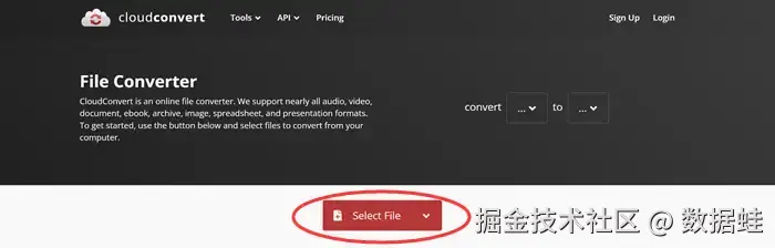 步骤一: Mp4转视频怎么转?打开浏览器,搜索CloudConvert并进入官网。点击页面中间的 【Select File】 ,选择视频文件。