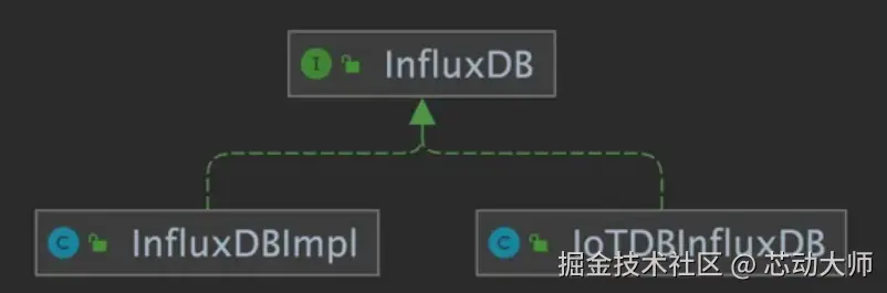 该适配器以 IoTDB Java ServiceProvider 接口为底层基础,实现了 InfluxDB 的 Java 接口 interface InfluxDB,对用户提供了所有 InfluxDB 的接口方法,最终用户可以无感知地使用 InfluxDB 协议向 IoTDB 发起写入和读取请求。