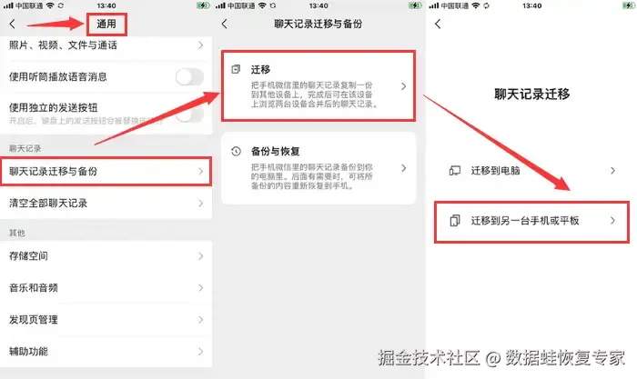 步骤1:在旧手机上打开微信,进入 【我】>【设置】>【通用】 。在 【通用】 页面中,选择 【聊天记录迁移与备份】 ,按提示完成备份后迁移到新手机上。