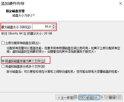 【这里假如分配50G 选择单个文件】