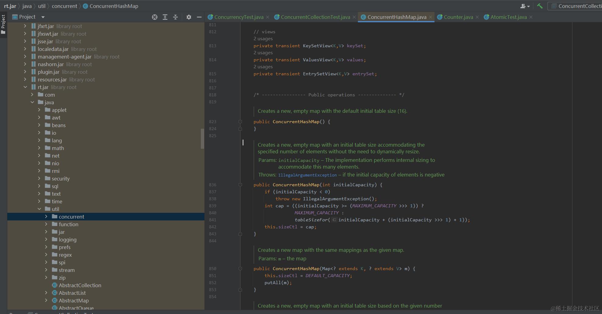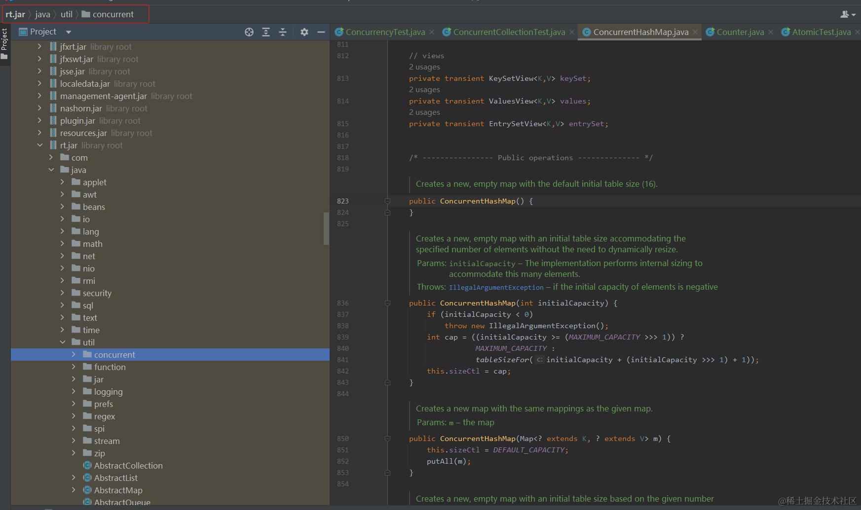 ConcurrentHashMap使用分段锁(segmentation)的概念来提高并发性能。如下是其源码的核心部分