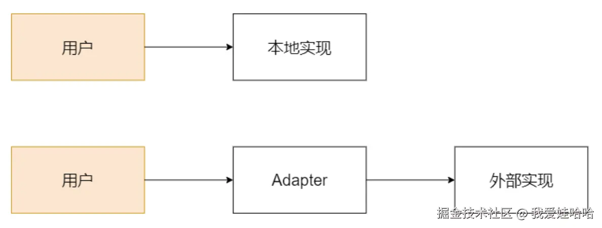 如下简图所示,适配器模式的类实际上是作为中间者来封装变化的。