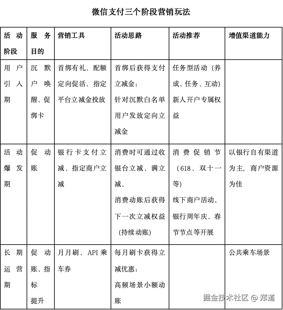 在这三个核心阶段,我们来看看具体的营销玩法(以微信支付为例):
