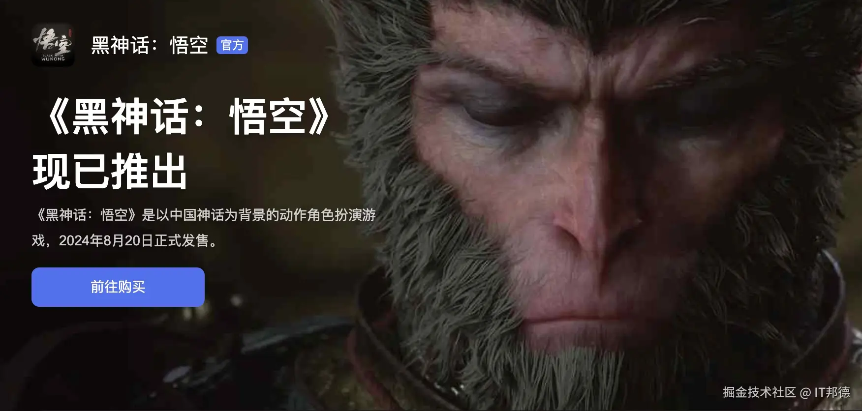 《黑神话:悟空》解锁不到 1 小时登 Steam 热玩榜首,同时在线人数突破一百万,为什么它这么火?光一个序章,中国梗就太密集了。没点中国文化知识都看不明白。重走西游,直面天命!判断一款游戏是否优秀,其实就跟评价一部电影一样,知名游戏媒体「IGN中国」给出了10分,也就是满分的成绩。这可以类比郭帆当年拍了几部青春片后,直接拿出超级科幻片《流浪地球》。而且「游戏科学」的对标对象来头更大,豆瓣评分更高,属于对标了《星际穿越》《阿凡达》.