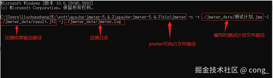 E:\soft\apache-jmeter-5.4.3\apache-jmeter-5.4.3\bin\jmeter -n -t ./jmeter_data/测试计划.jmx -l ./jmeter_data/result.jtl -j ./jmeter_data/jmeter.log