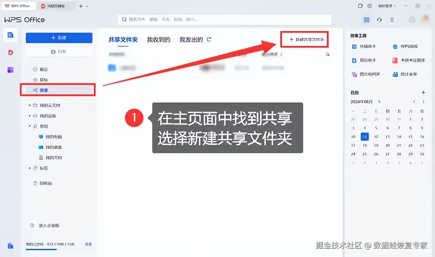 步骤1:在主页面中,选择 【共享】-【新建共享文件夹】 。