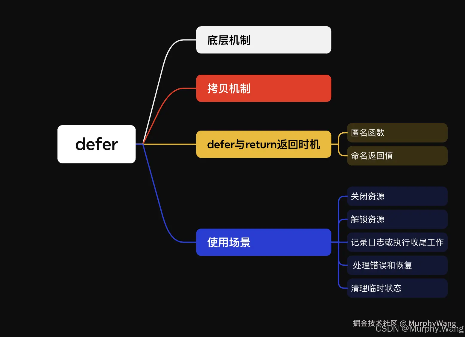 • 匿名返回值函数:return 语句计算出返回值并存储在临时变量中,随后执行 defer 函数,但 defer 对返回值的修改不会影响最终返回值。