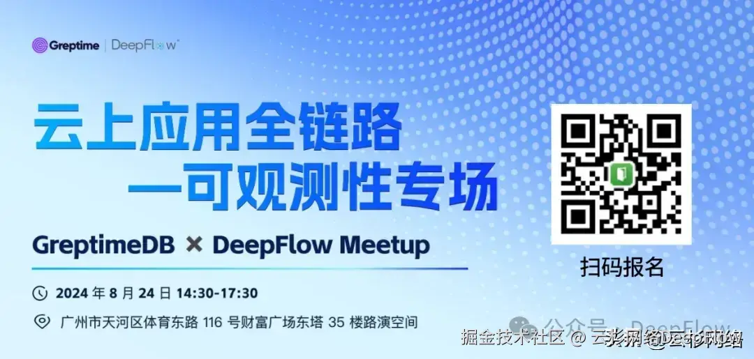 欢迎报名参与8月24日·DeepFlow可观测性Meetup·广州站,本次活动聚焦可观测领域,来自 DeepFlow、Greptime、腾讯云等多位可观测领域行业专家将一起深入探讨可观测领域的创新技术解决方案。