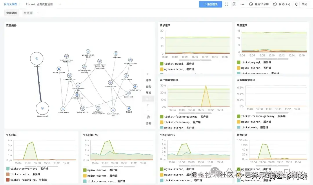 同时可灵活定制应用监控视图对云端业务服务平台的应用调用指标实时观测。