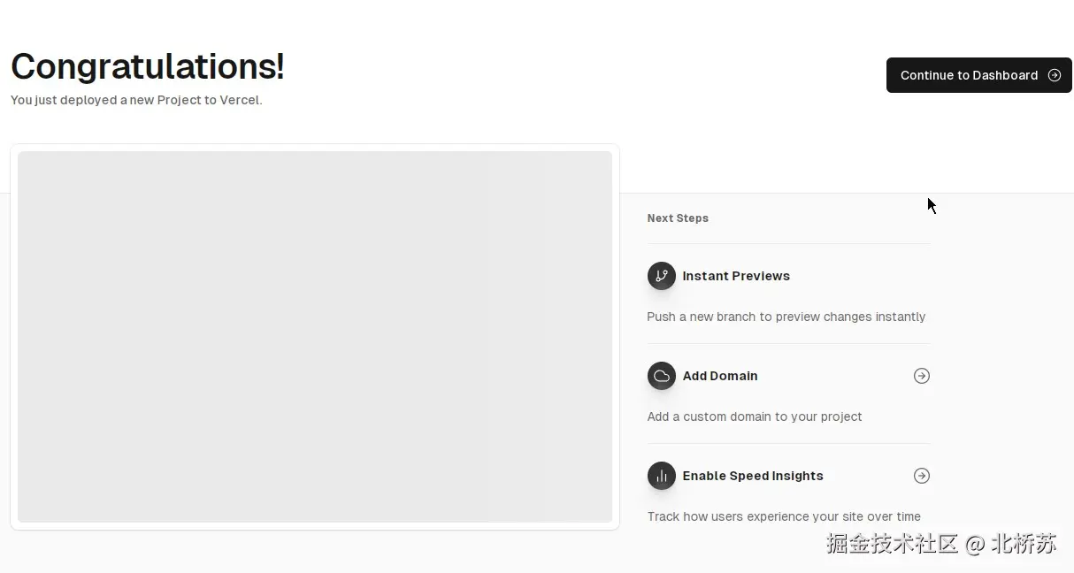 登陆后点击 “Import Git Repository”,然后选择仓库安装并设置权限,接着是 Configure Project,Congratulations 都可以直接下一步进入到 Production Deployment,可参考下图。