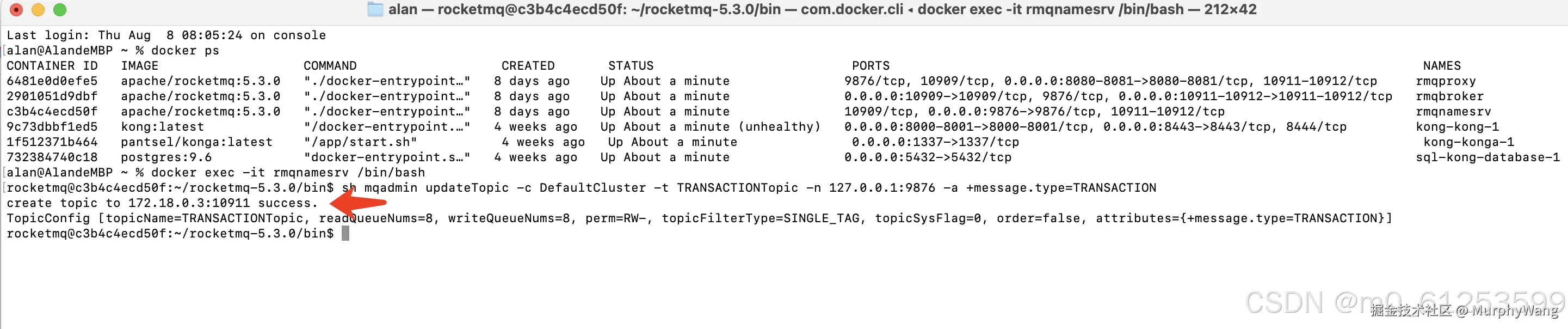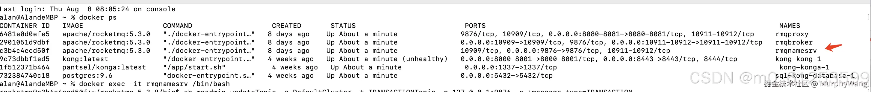 docker ps查看rocketMQ 容器名称