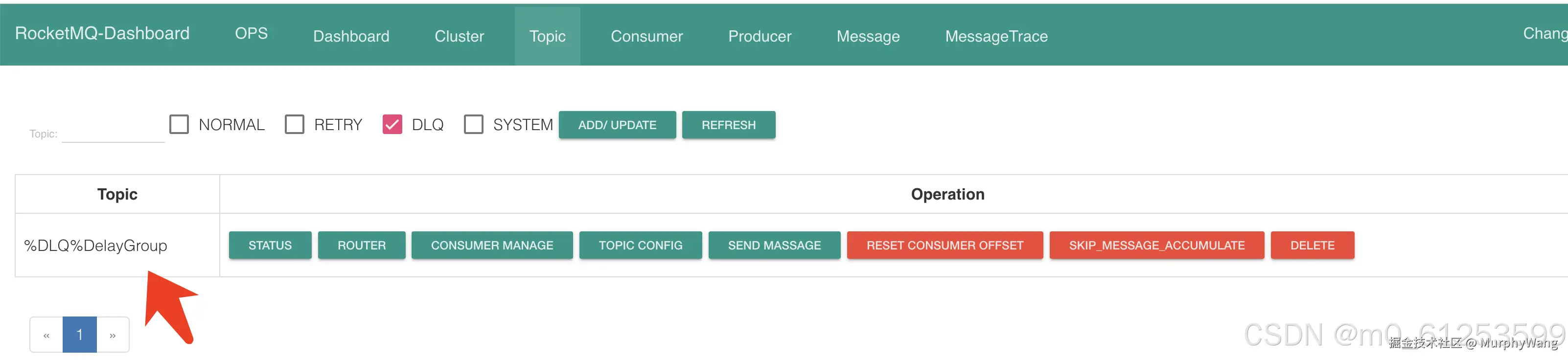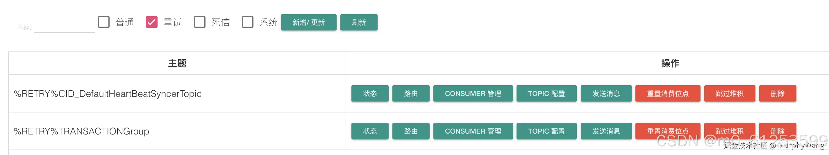 在消息重试的时,在dashboard中可以看到该ConsumeGroup下面的的重试队列信息
