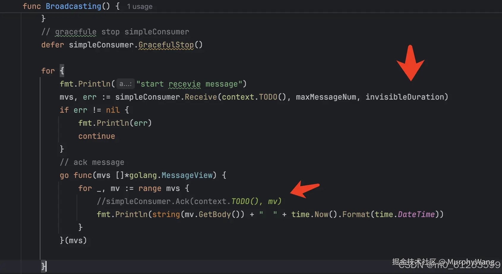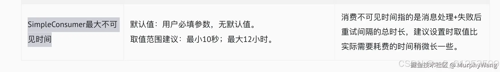 当我们不给消息返回ack,触发消息重试,golang最新版本SimpleConsumer最大不可见时间为20秒。官方文档为10秒钟。超过最大不可见时间未返回ack,触发消费者重试!编辑