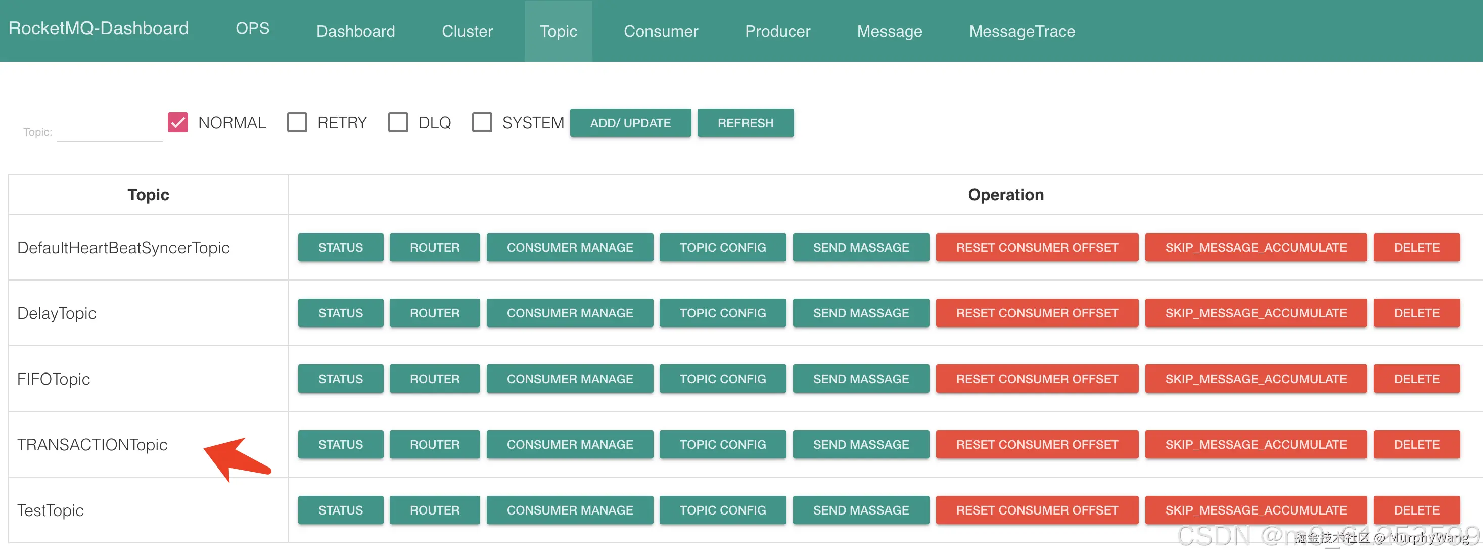 sh mqadmin updateTopic -c DefaultCluster -t TRANSACTIONTopic -n 127.0.0.1:9876 -a +message.type=TRANSACTION