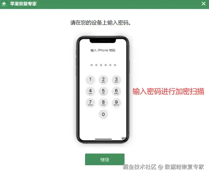 步骤2:扫描过程中,可以在手机上输入密码进行加密扫描,以便更好地找到您需要恢复的数据。同时,软件也会严格保护您的隐私,不会泄露您的个人私隐。