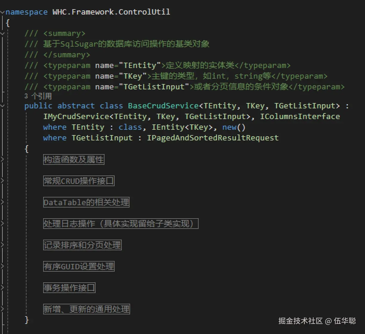 为了实现我的SQLSugar开发框架类似的封装模式,我们参考SQLSugar开发框架中基类CRUD的定义方式来实现多种接口的封装处理。