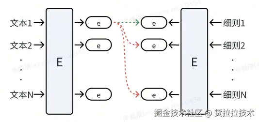 我们首先将文本信息和细则定义通过同一个encoder进行编码,转化为embedding向量。在这个过程中,当前文本对应的细则被视为正样本对,而其他与此文本不相关的细则被视为负样本对。
