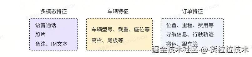 3. 多模态特征。判责标准涉及语音、照片、文本、位置、时间、费用、轨迹等多维度特征。如何更好的利用这些信息,对工程、算法都是很大的挑战。