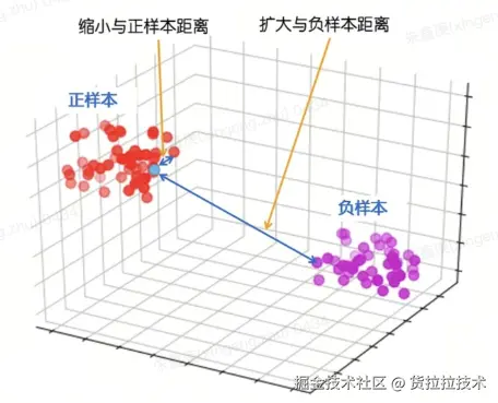 通过模型优化,我们拉近正样本对间的距离,同时推远负样本对间的距离,从而在向量空间中形成清晰的区分。