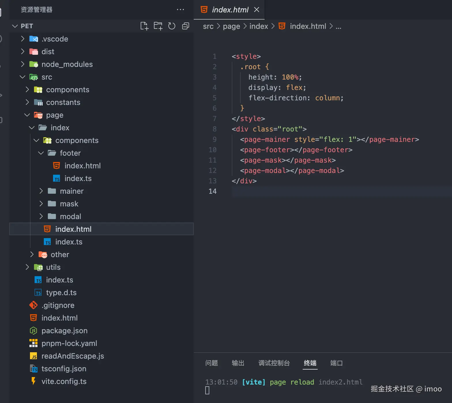 搞定这两步,你很满意,项目终于有了点样子,但是还不够。你发现虽然 js、css 这些可以拆出去,但 html 这部分是不可拆的,最多使用创建节点的方案,再拼接进那个 html 中。