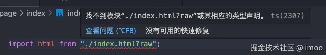 ts 出现了报错,这是一种非法写法,好在这种小 case 你有 gpt 帮你处理。只需要在根目录新建一个 type.d.ts,并写入: