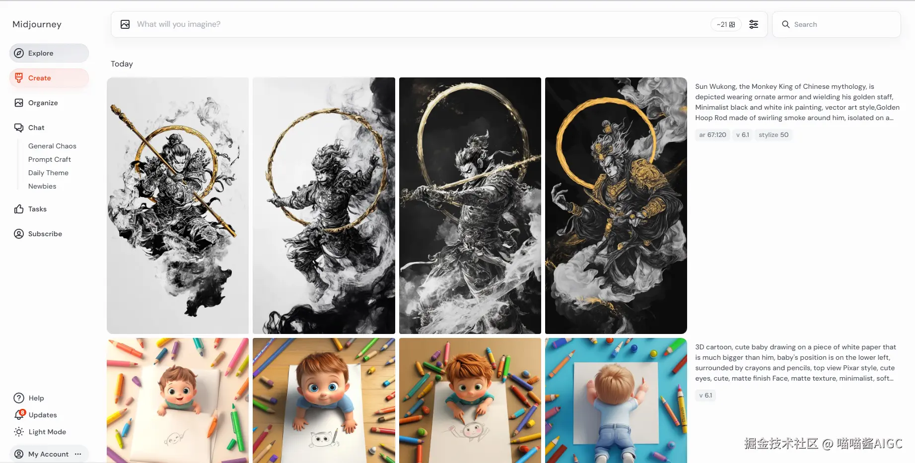 Midjourney Web 网站地址:www.midjourney.com/imagine