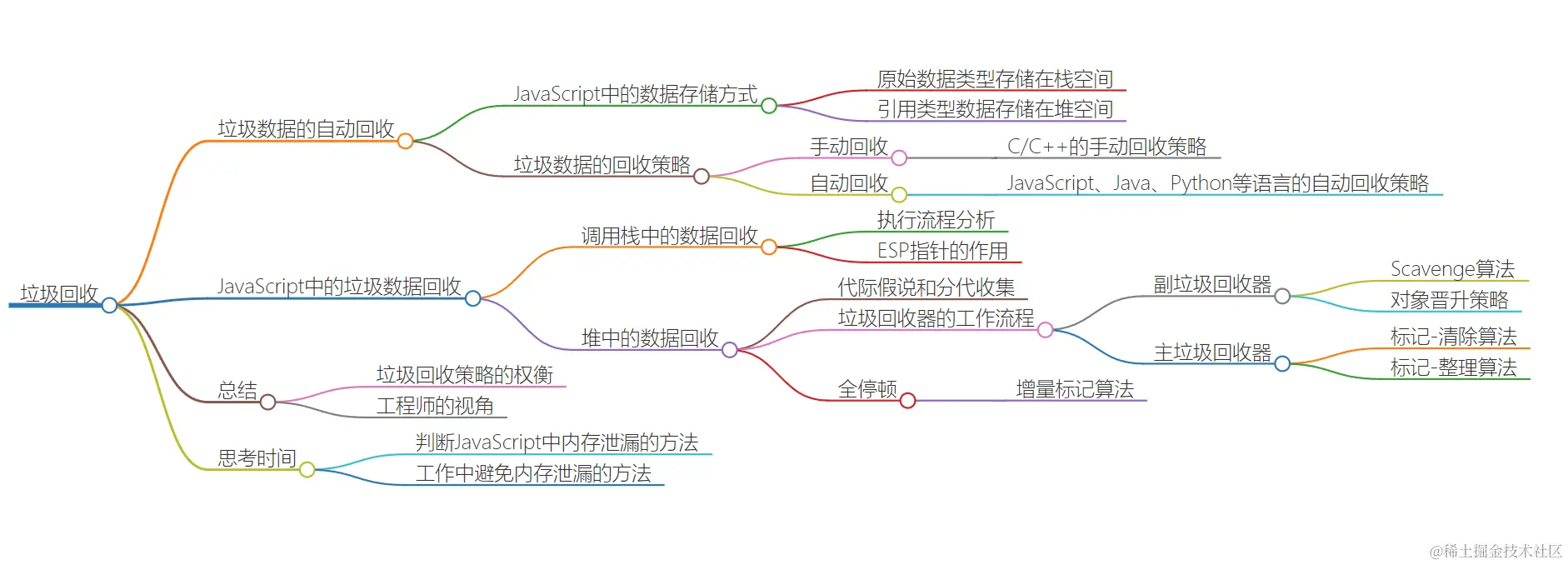 上面我们提到了 JavaScript 中的数据是如何存储的,并通过例子分析了原始数据 类型是存储在栈空间中的,引用类型的数据是存储在堆空间中的。通过这种分配方式,我们解决了数据的内存分配的问题。