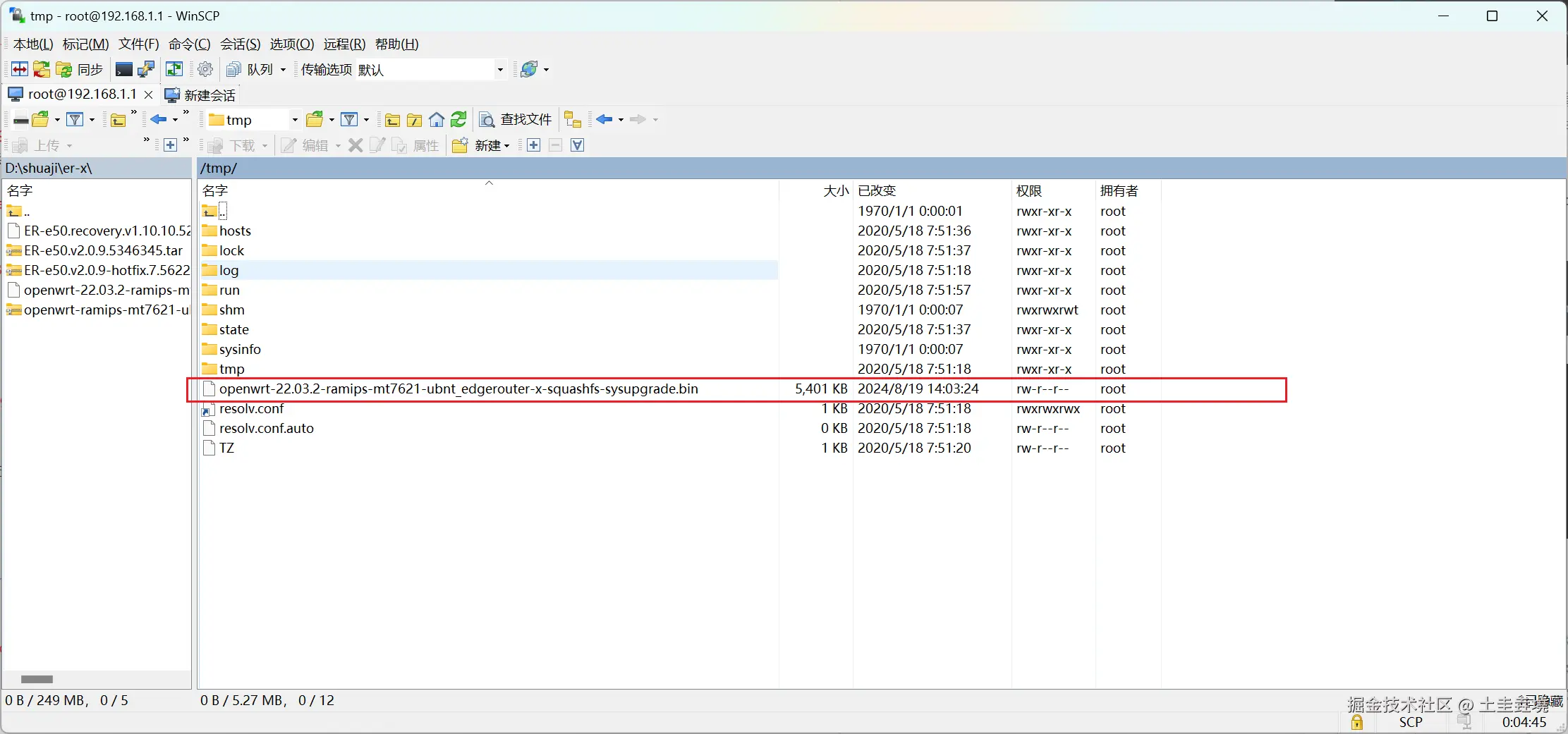 刷入镜像: sysupgrade -F openwrt-22.03.2-ramips-mt7621-ubnt_edgerouter-x-squashfs-sysupgrade.bin