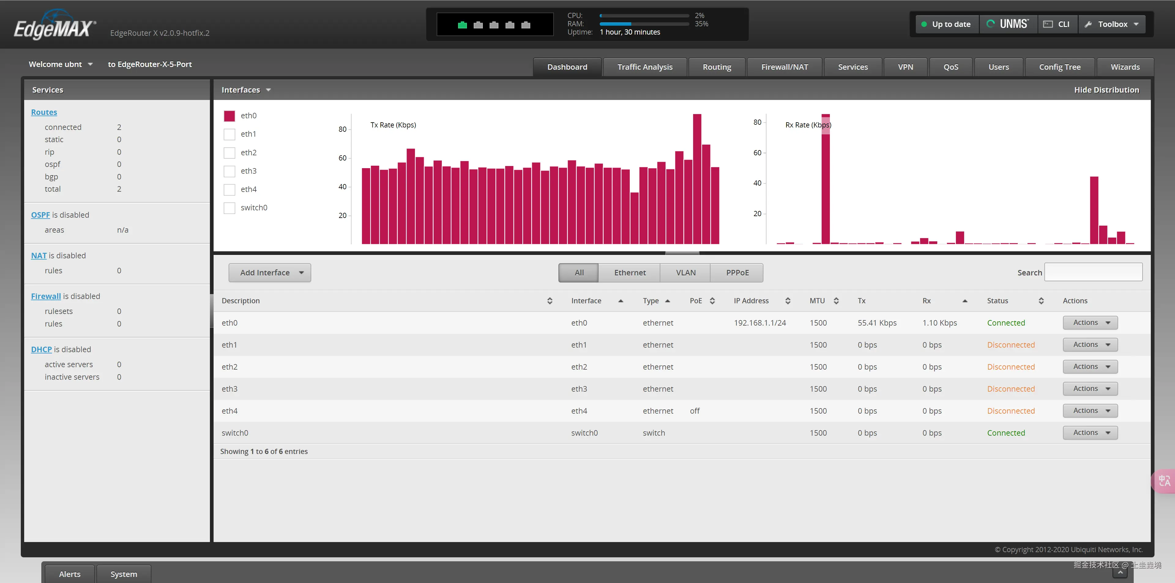 下载最新的镜像 EdgeRouter ER-X/ER-X-SFP/EP-R6/ER-10X: Firmware v2.0.9-hotfix.7