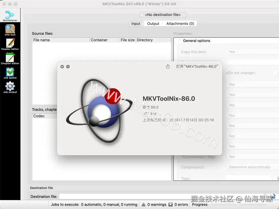 MKVToolNix是一款苹果电脑上的视频编辑工具,能够很好把多种视频、音频、字幕等封装成mkv格式,并能够提取mkv中的音视频、字幕文件,支持将多种视频、音频、字幕等格式封装成mkv格式。