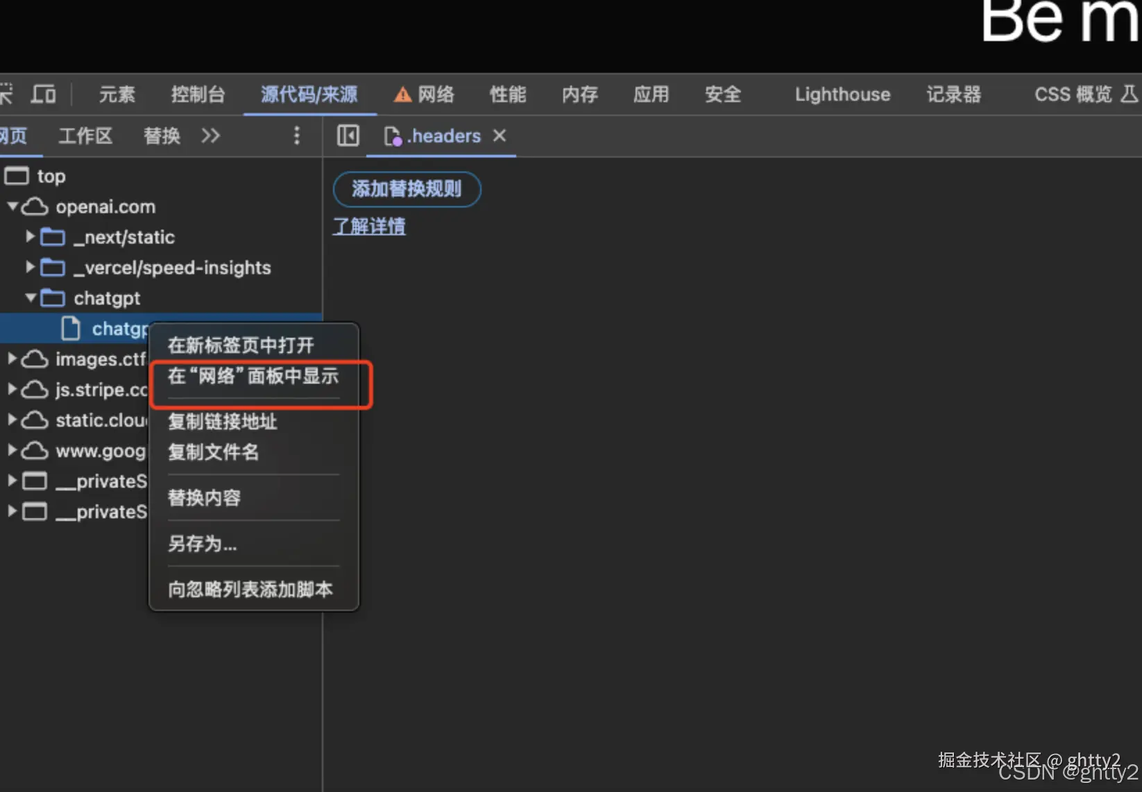 本文希望通过对ChatGPT官网的网络活动进行分析, 以此来了解如何使用Chrome devTools的网络栏如何使用?同时, 会结合我们经常会用到的一些调试技巧, 让我们更快速的定位问题.