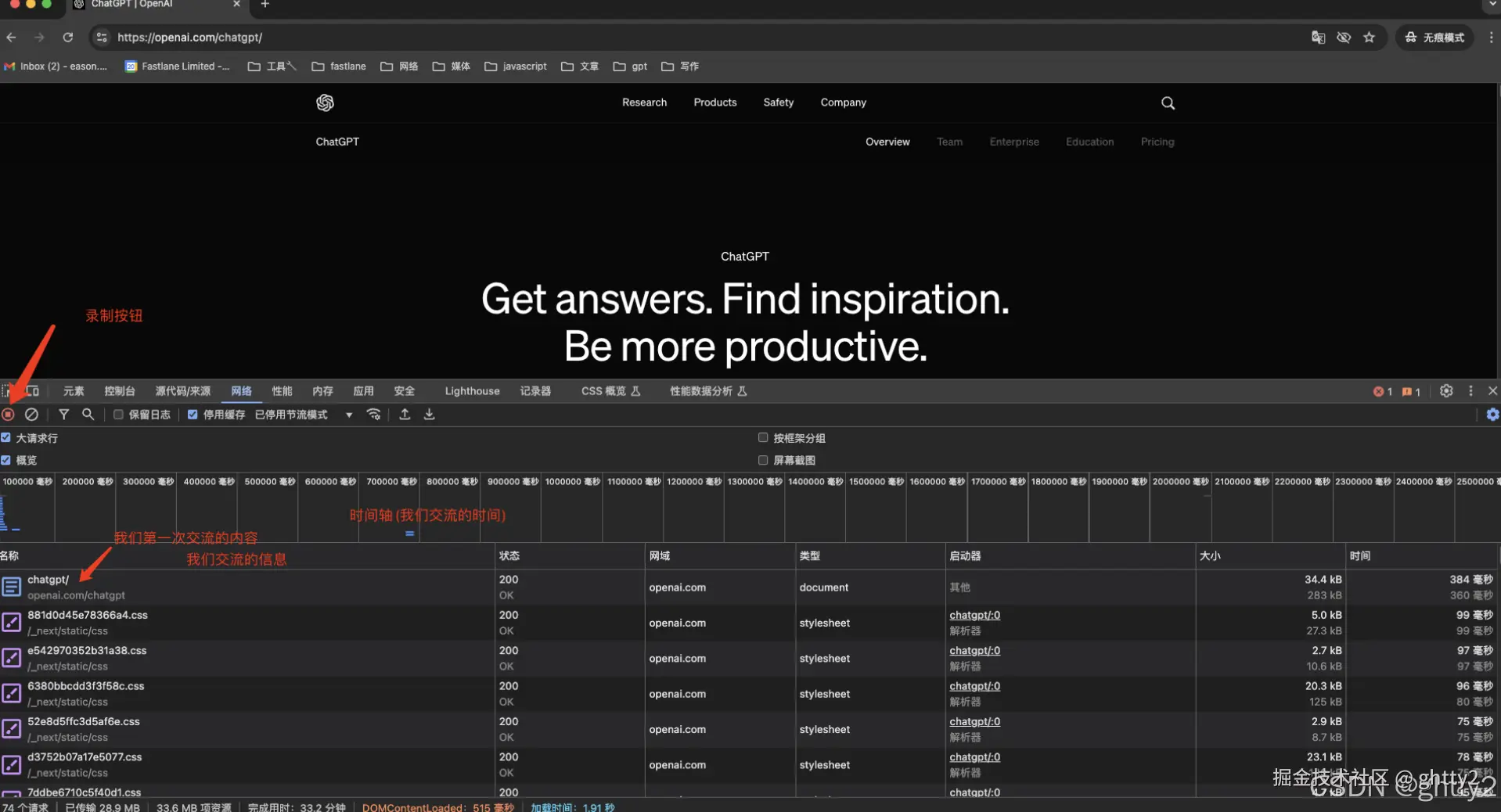 接下来我们通过检查我们输入url后我们向open.ai的Web服务器发送的请求有哪些,具体我们之间又发生了什么.