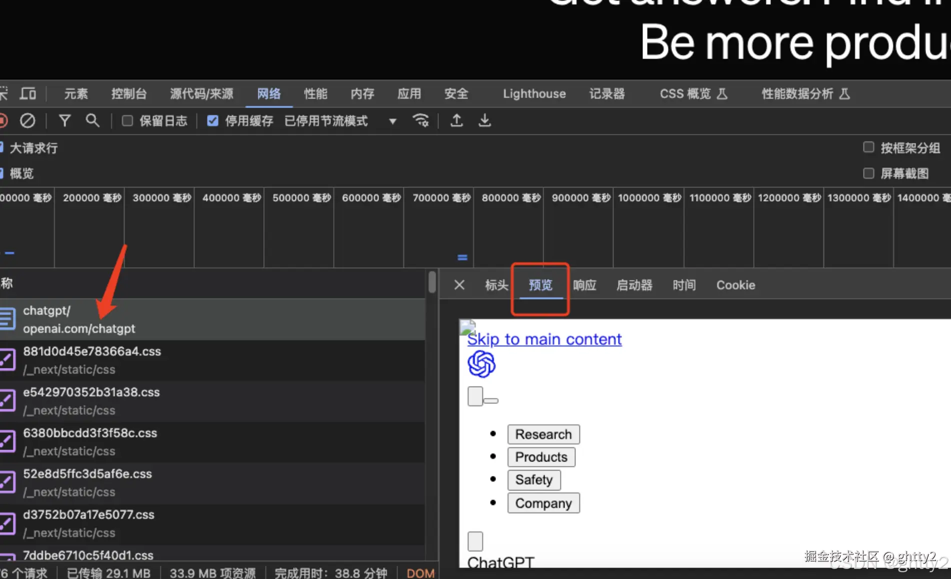 相信眼力劲好的小伙伴已经看到了, openai的服务器首先给我们返回了一个document, 这就是我们再熟悉不过的HTML文件, 点击preview后我们可以发现它长这样: